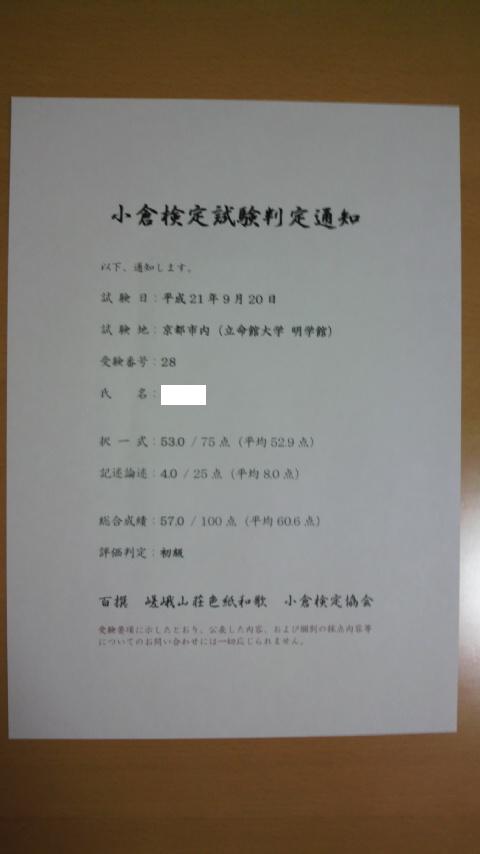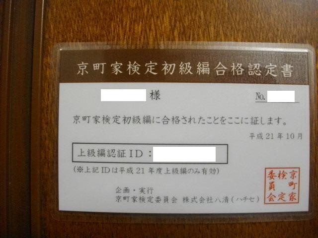 一昨日、平成21年度『京町家検定初級編』の合格認定書が到着しました。