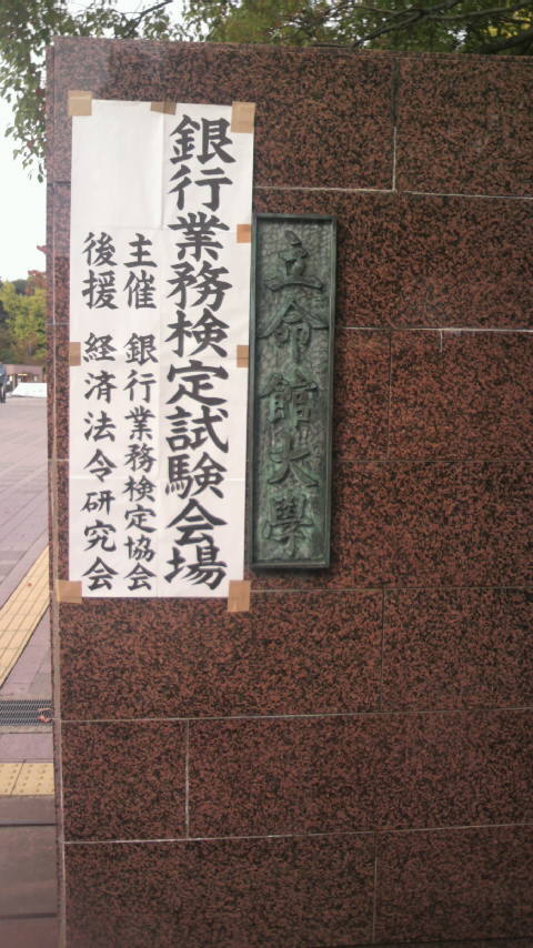 予定通り、銀行業務検定を立命館大学衣笠キャンパスにて受験してきました。
