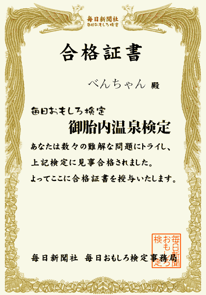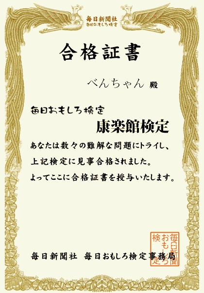 昨日、今日と二日がかりで全50問(3択式)を解答(HPより送信)したところ、全問正解を果たし1級に認定されました。