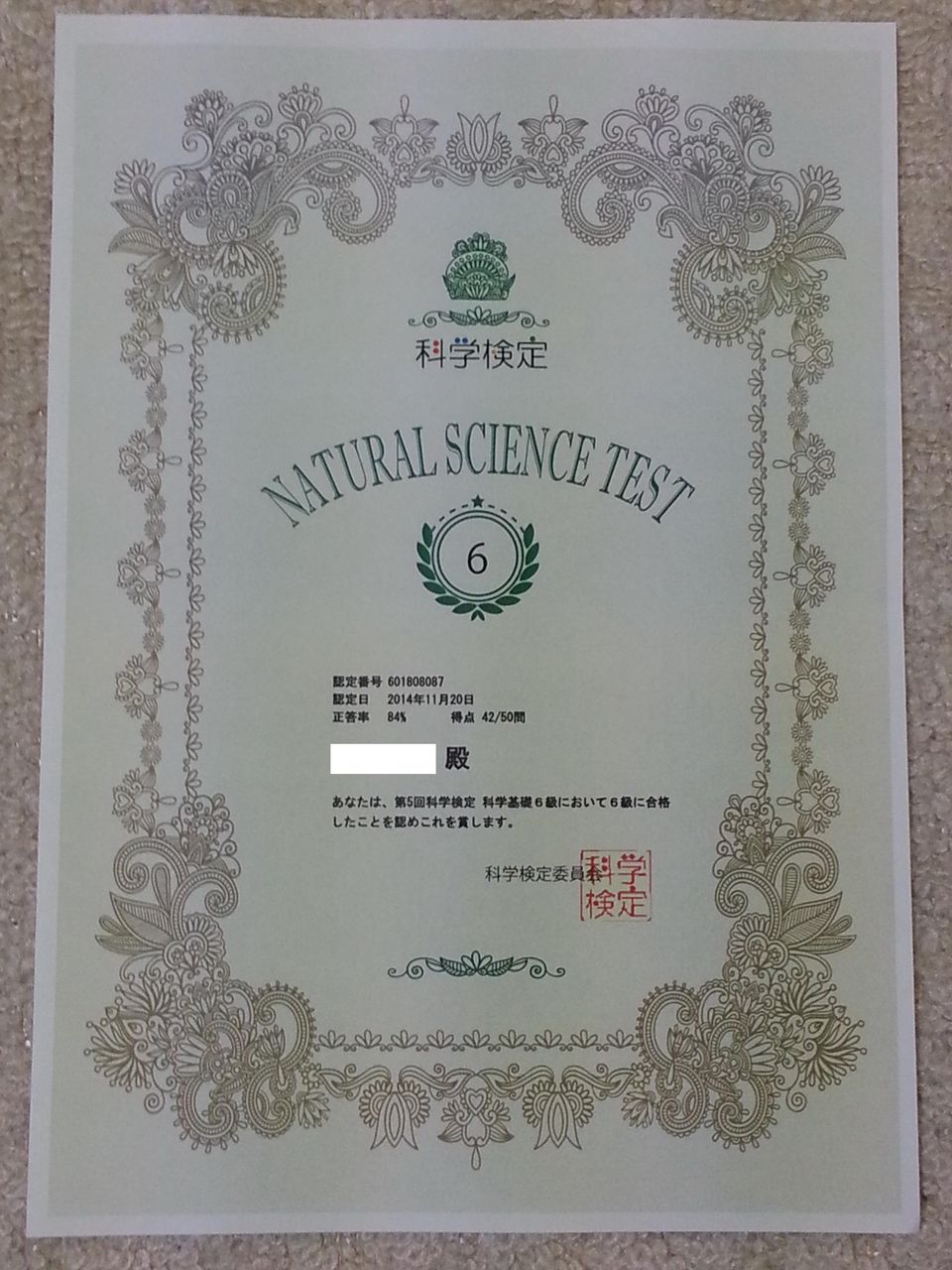 ラッキーだったのは、6級で出題された設問とまったく同じものが出たことです。
