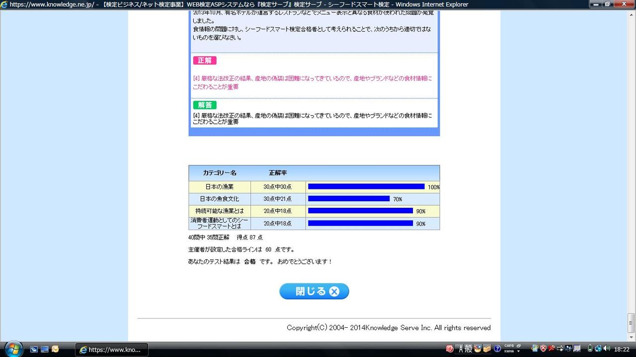 いわゆる無勉状態で今までの人生経験だけで受検しましたが、結果は27問正解(90%)で合格しました。