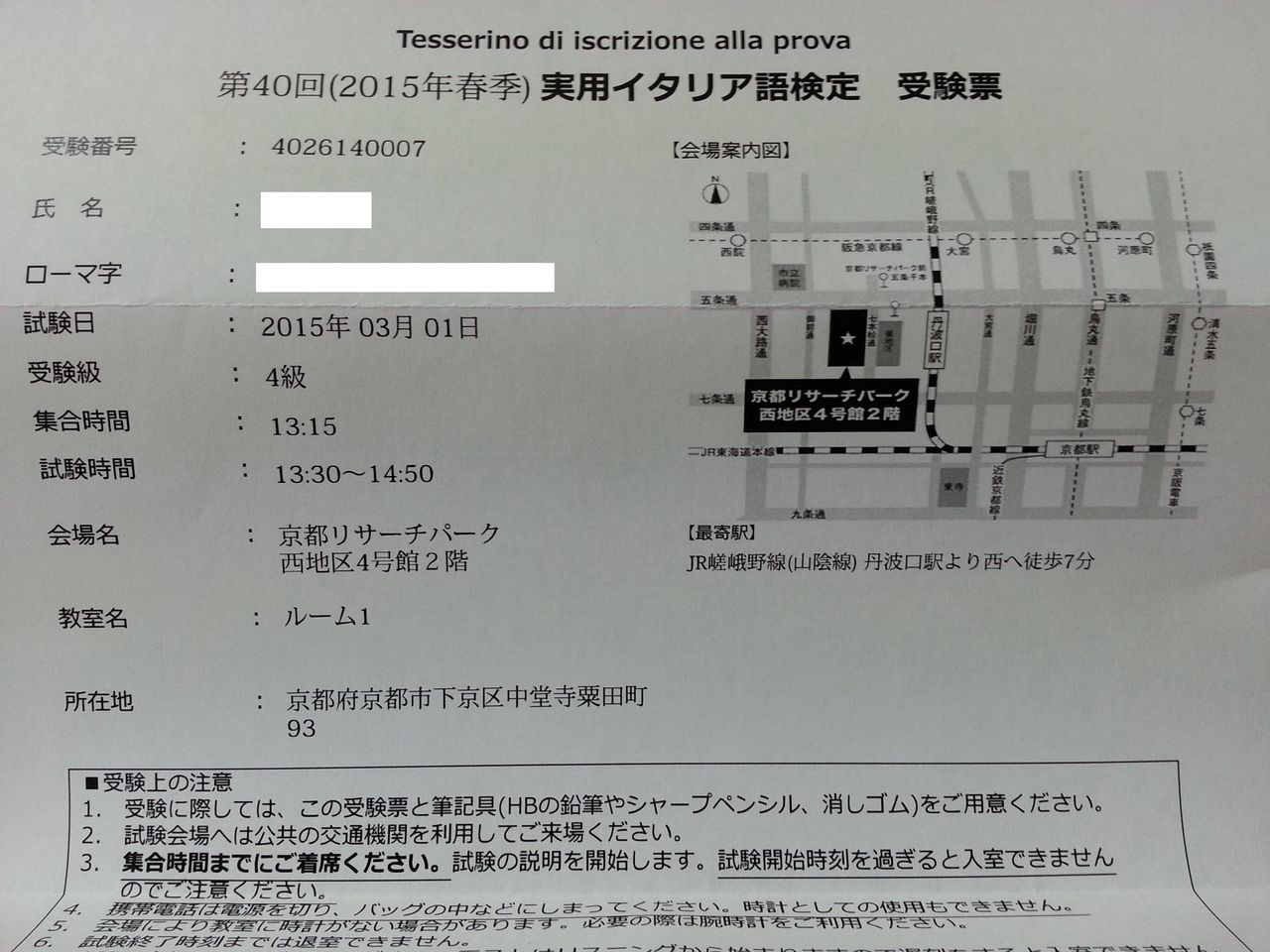 2015ǯ3·î1Æü¡ÊÆü¡Ë¤Ë¼Â»Ü¤µ¤ì¤ë¡Ö¼ÂÍÑ¥¤¥¿¥ê¥¢¸ì¸¡Äê»î¸³¡×4µé¤Î¼õ¸³É¼¤¬ËÜÆüÅþÃ夷¤Þ¤·¤¿¡£