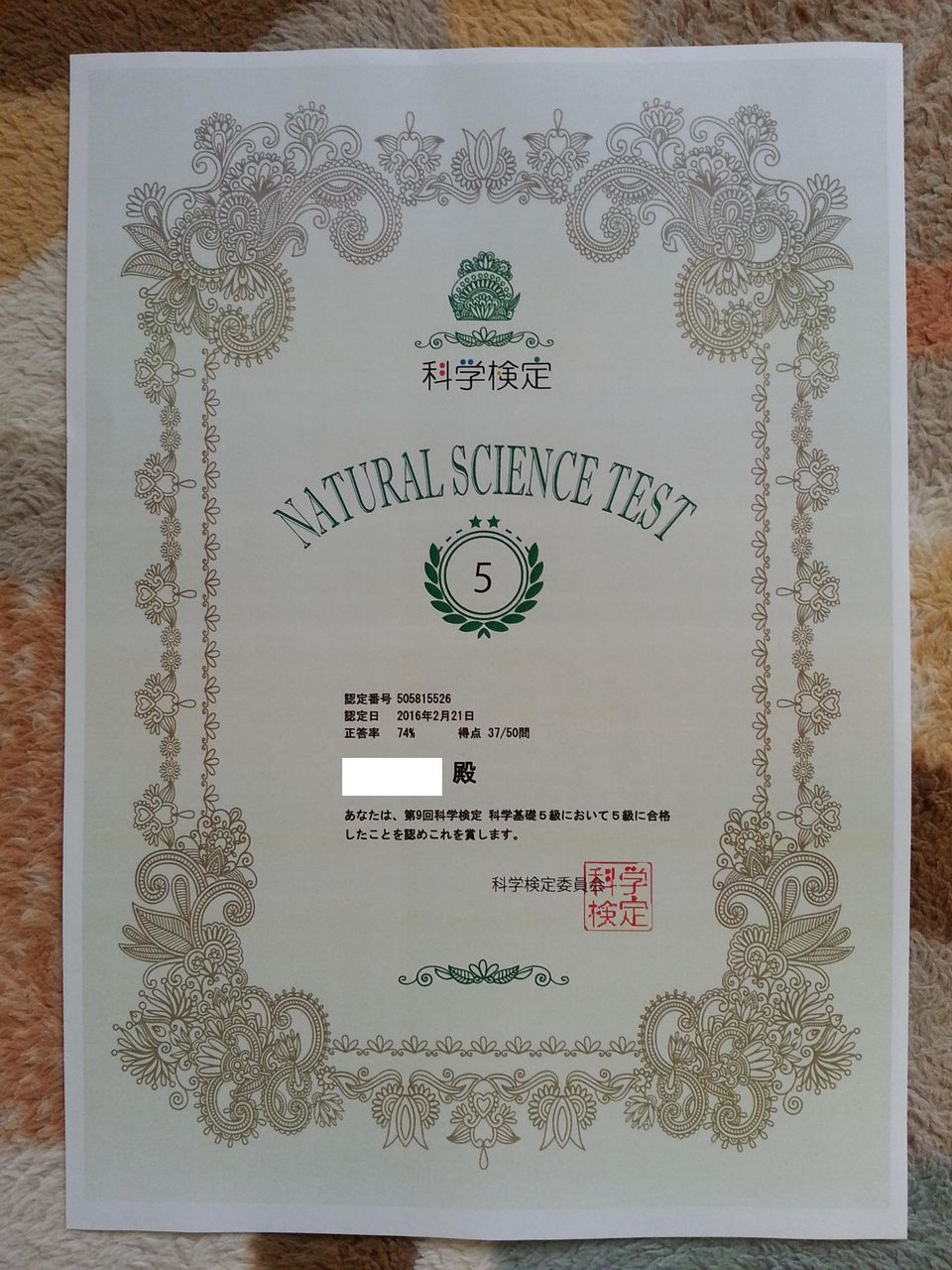 ÉÔ¹ç³Ê¤Ïɬ»ê¤Î¾ðÀª¤Ç¤·¤¿¤¬¡¢·ë²Ì¤Ï50ÌäÃæ37ÌäÀµ²ò¡ÊÀµÅúΨ74%¡Ë¤ÇÉáÄ̤˹ç³Ê¤·¤Æ¤¤¤Þ¤·¤¿¡£