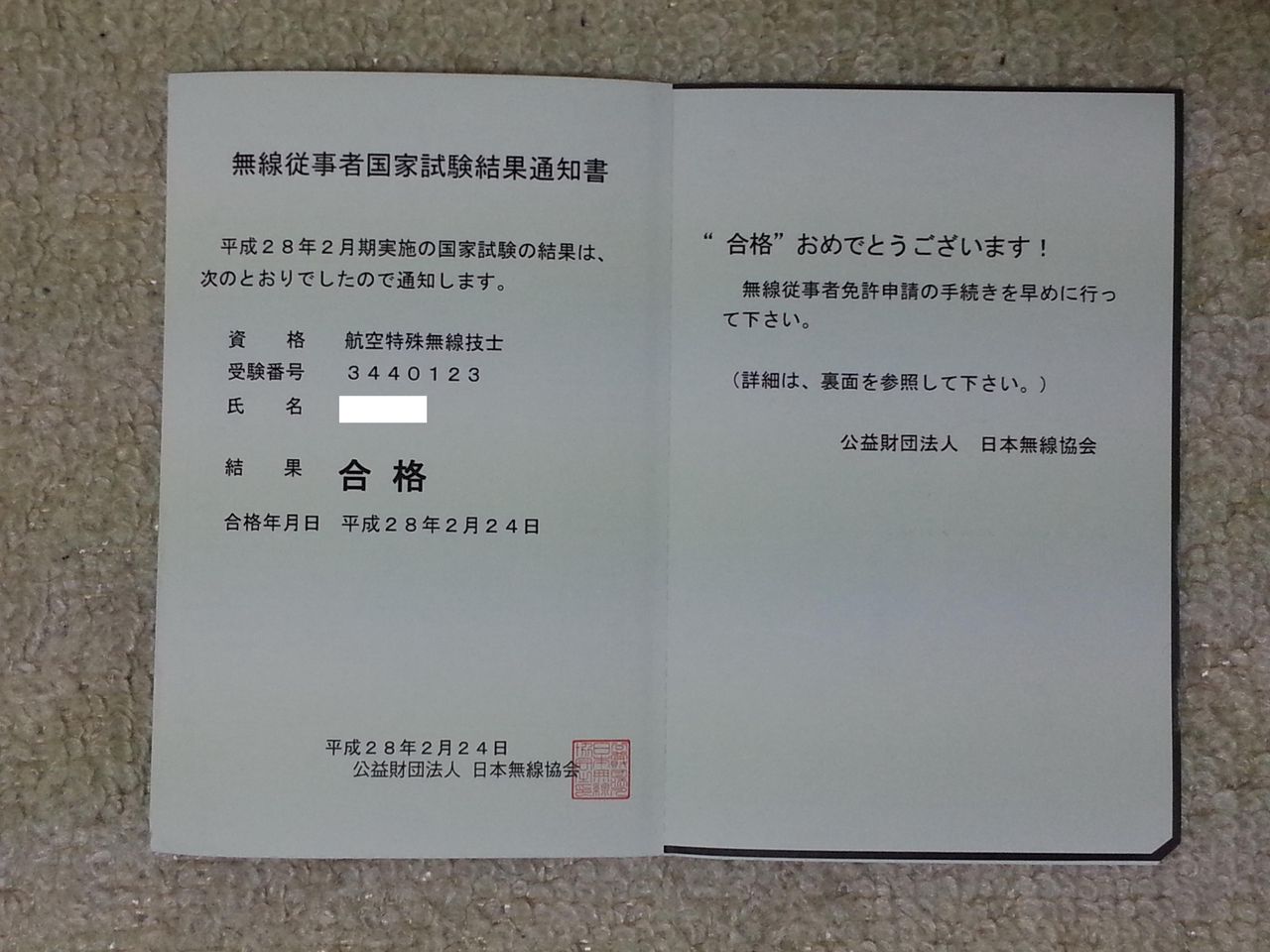 µî¤ë2·î6Æü¤Ë¼õ¸³¤·¤¿¹Ò¶õÆÃ¼ì̵Àþµ»»Î»î¸³¤Î¸ø¼°¹ç³Êȯɽ¤ÏËÜÆü2·î25Æü¡Ê·ë²ÌÄÌÃνñ¤ÎȯÁ÷¤Ï2·î24Æü¡Ë¤Ç¤¹¤¬¡¢ºòÈÕ¡¢ÆüËÜ̵Àþ¶¨²ñ¤ÎHP¤ò¸«¤¿¤é¡¢´û¤Ë¥Õ¥é¥¤¥ó¥°¤Ç¹ç³Êȯɽ¤¬¤µ¤ì¤Æ¤ª¤ê¡¢¹ç³Ê¤ò³Îǧ¤·¤Þ¤·¤¿¡£
