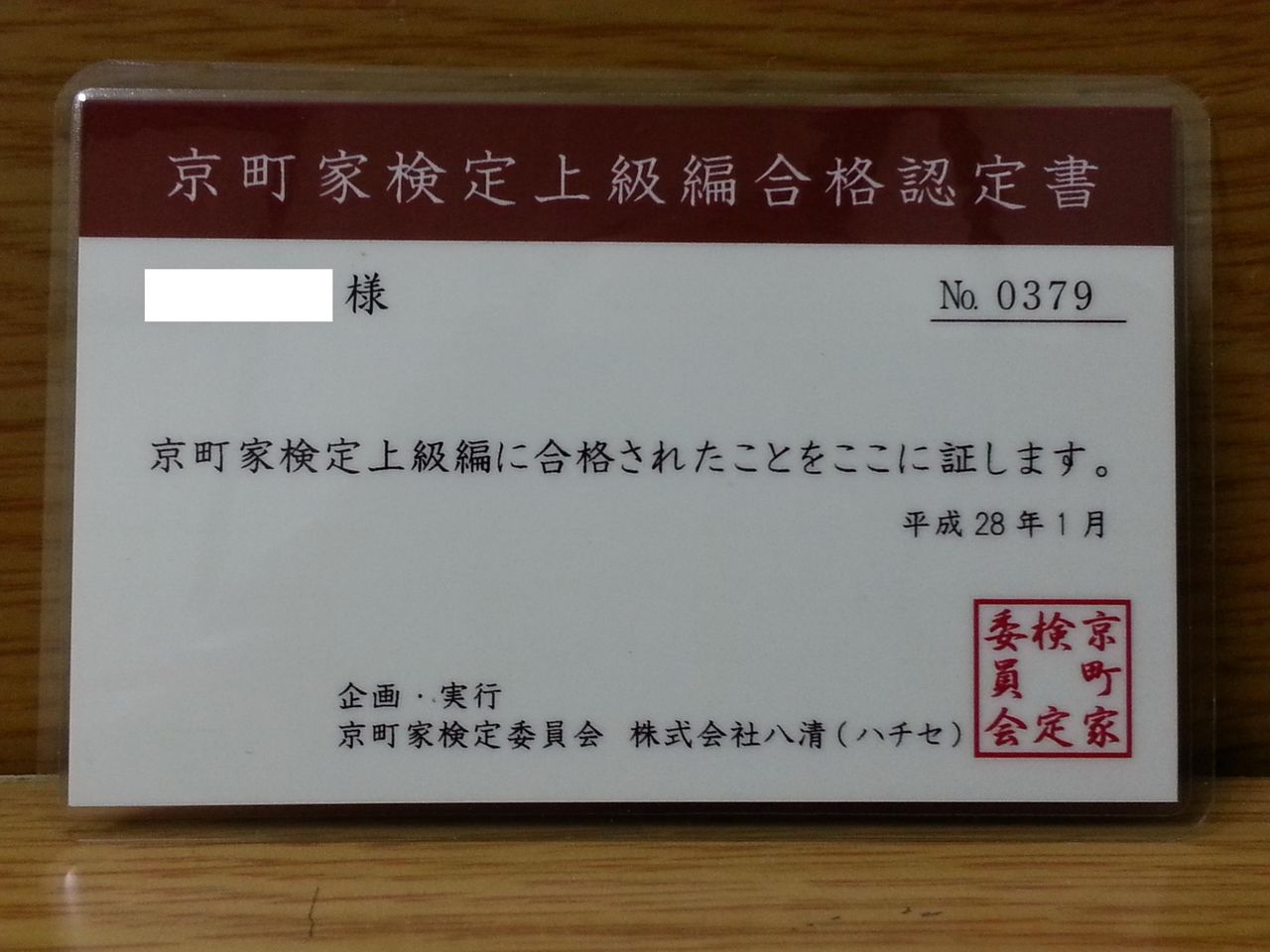 ºòǯ12·î15Æü¤Ë¹ç³Ê¤·8Ï¢ÇÆ¤òãÀ®¤·¤¿Ê¿À®27ǯÅÙµþÄ®²È¸¡Äê¾åµéÊԤιç³ÊǧÄê½ñ¤¬ÅþÃ夷¤Þ¤·¤¿¡£