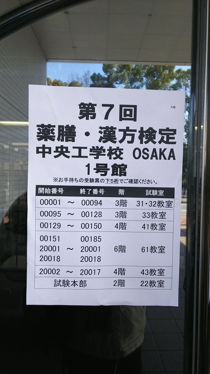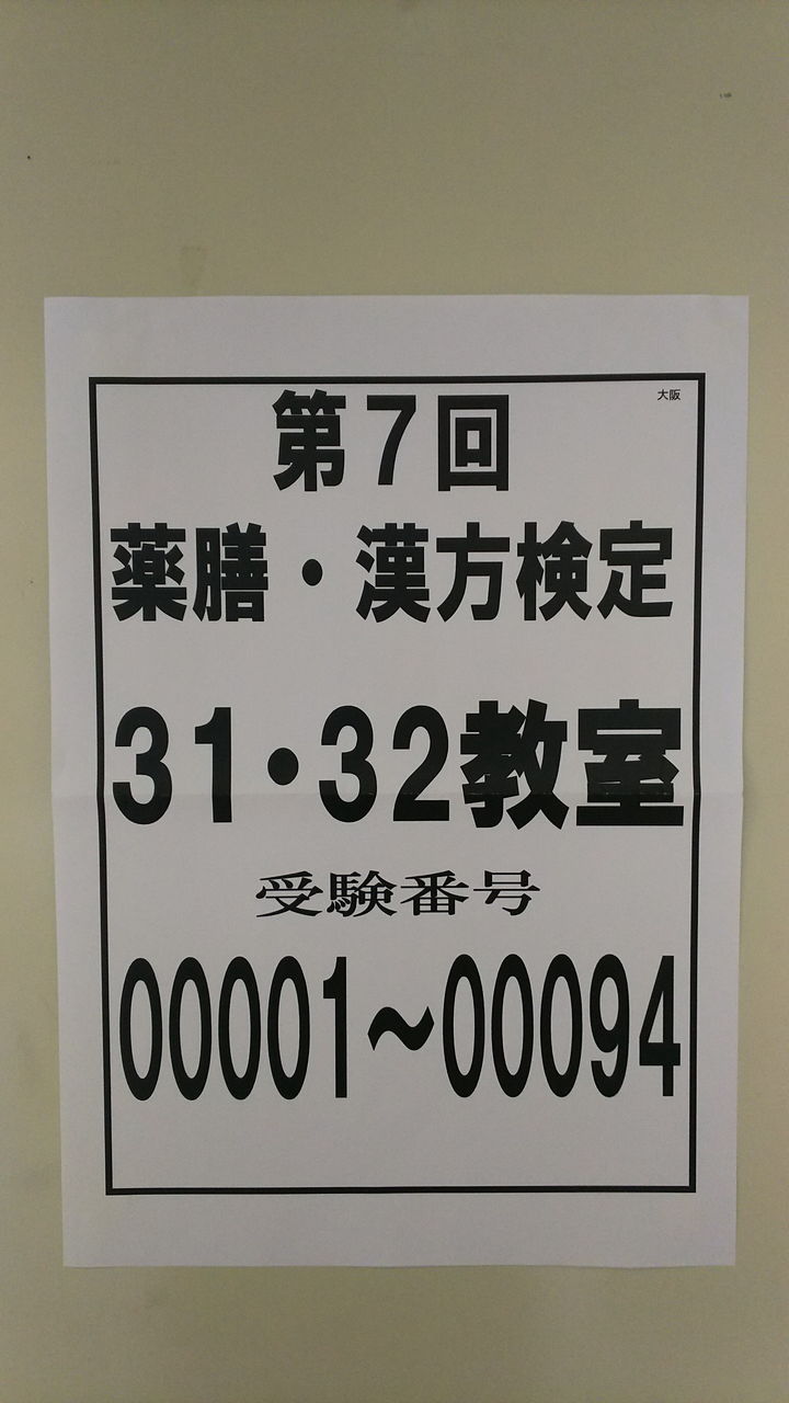 第7回薬膳・漢方検定を中央工学校 OSAKA 1号館3階にて受験してきました。