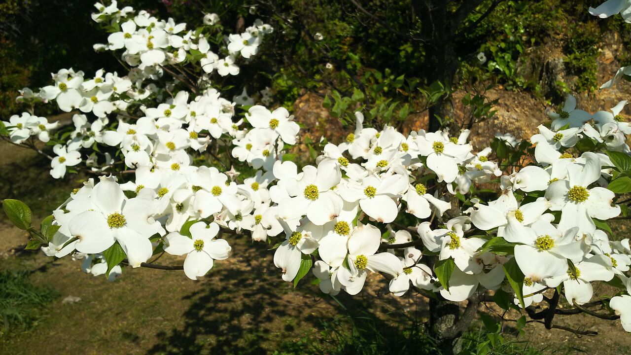 公園内にはハナミズキやツツジ、アヤメが綺麗に咲いていました。