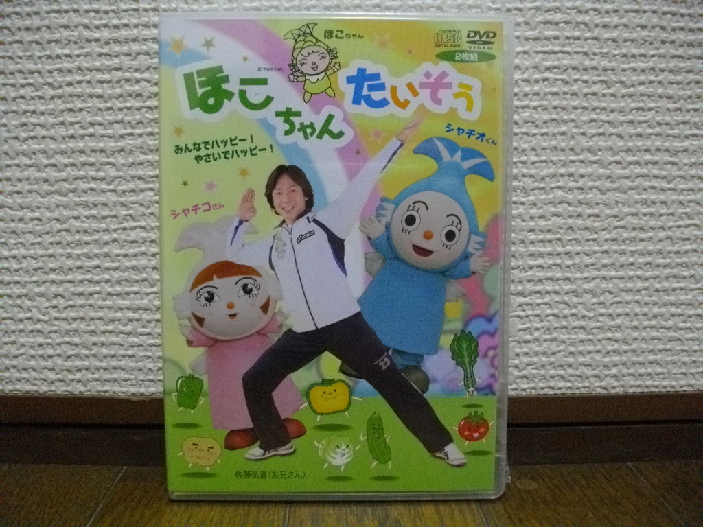 「にわとり・タマゴと書かれたバッグ」「パンフレット類」「シャーペン」「携帯ストラップ」「箸」「ほこちゃん体操DVD2枚組」「キーホルダーの笛?」「食事バランスガイドのファイル」など総数13点でした。