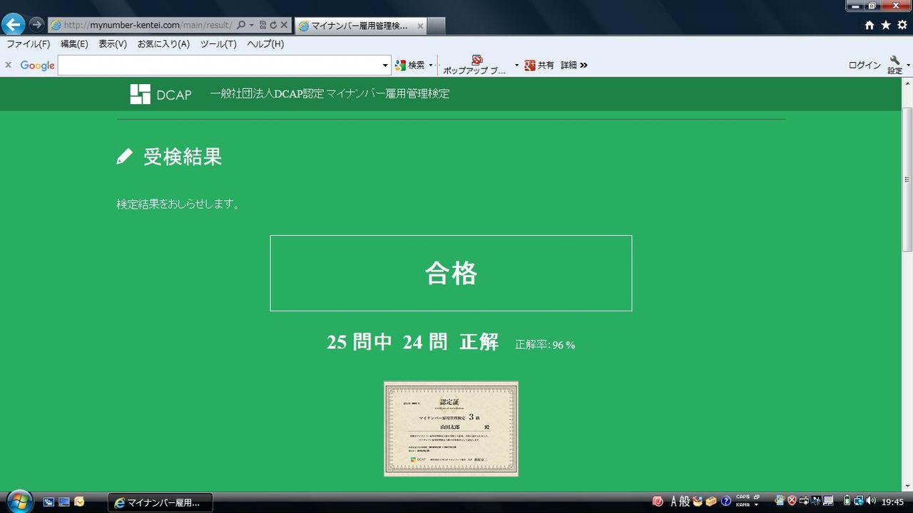 本日は一般社団法人DCAP認定 マイナンバー雇用管理検定3級に挑戦してみました。