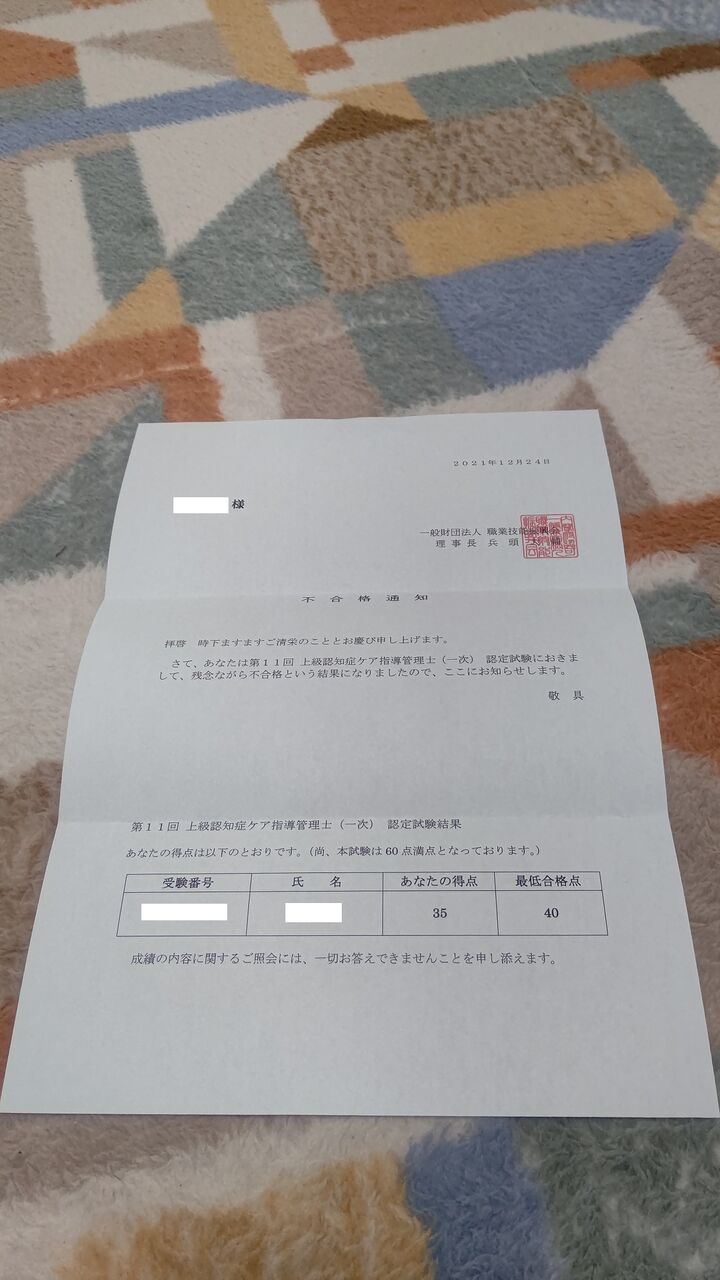 去る12月5日にリベンジ受験した第11回上級認知症ケア指導管理士(一次)認定試験の結果が本日到着しました。